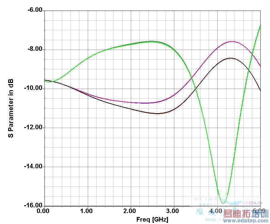 在画完后像观察输出端,电阻负载端,电容负载端的S参数时就存在了疑惑: