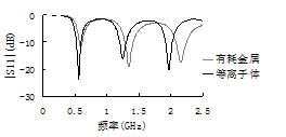 图6 等离子体和有耗金属对应的|S11|图