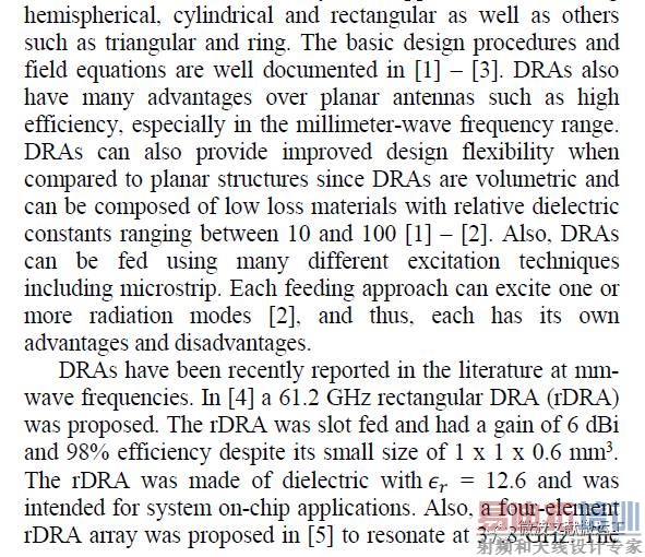 索引术语 - 天线阵列,介质谐振器,mmwave,cDRA,MIMO。