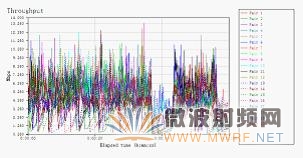 图5、图6分别为双通道单极化2´2MIMO系统中点40M模式下的上行和下行吞吐量。