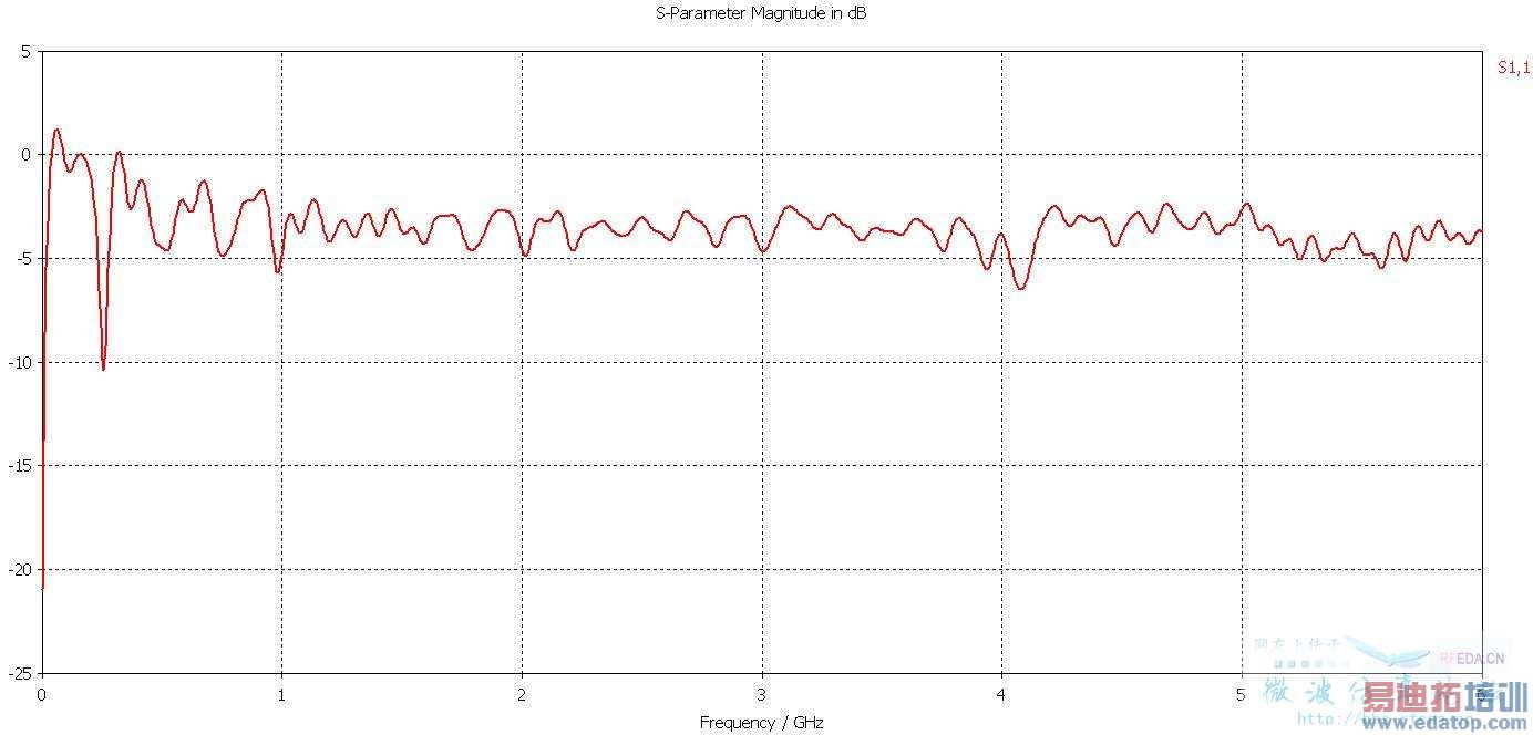 你的这两个问题说明你不看帮助文件。使用离散端口计算S参数,必须使用"S-Parameter Type"的离散端口。CST MWS帮助文件《Discrete Port Overview》。按照你的模型的原始设置,计算得到的S11如下: