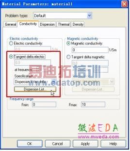 在Conductivity 选项卡中激活Tangent delta electric,选择Specification Dispersion fit tan delta,点击Dispersion List 按钮