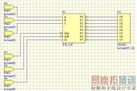 绘制PLD原理图时,必须放置输入/输出端口(输入:IPAD、输出:OPAD、输入/输出:IOPAD)元件,这些元件所指定的引脚代表着目标器件的引脚。