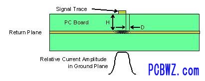 典型的距离“H”取决于承载流出讯号的路径和回流平面在印刷电路板上实际所处的位置︰