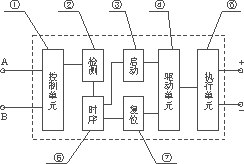 KJH型浪涌电流限制器的原理框图如图2所示。其工作过程和信号流向如下:当A、B端输入上电信号,检测单元②立即使时序电路⑥进入启动程序,启动驱动单元④,使执行单元⑤的电阻值由大逐渐变小,从而达到限制浪涌电流和保证电源正常工作的目的。当A、B端输入掉电信号,则检测单元②使时序电路⑥转入复位程序,复位电路⑦工作,使驱动单元④和执行单元⑤立即复位,电阻值立即变大,等待下一次上电,重复前一次上电时经历的过程。