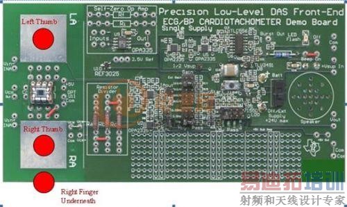 图 2 精密型低电平 ECG 心率计电路板的正面图