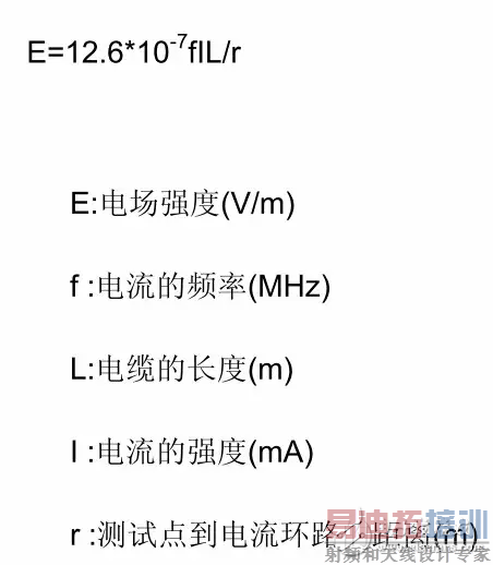PCB 上有许多信号环路,由中有差模电流环也有共模电流环,计算其辐射强度时,可等效为环天线,辐射强度由下式计算: