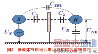 在保证屏蔽体金属体良好接地后,C1 和C2 的影响可略去不计,可得: