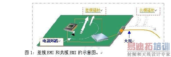 在PCB电路板中,电磁能的存在有两种形式,即差模EMI和共模EMI。当器件输出的电流流入一个负载时,就会产生差模EMI。当电流流经多个导电平面,如PCB上的导线组或电缆,就会产生共模EMI。图1给出了差模EMI和共模EMI的示意图。