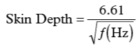 在高频段,必须考虑一种称为“趋肤效应”的现象。趋肤效应会引起电流流向导线的外表面——结果会使得导线的横截面变窄,因此使直流(DC)电阻增大。虽然趋 肤效应超出了本文讨论的范围,这里还是给出铜线中趋肤深度(Skin Depth)的一个很好的近似公式(以cm为单位):