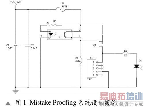 这一理念产生后便在很多领域得到了广泛应用。例如汽车电子系统中,汽车油箱盖子没盖好,汽车不能启动;汽车车门没关好,车不能启动或用警示灯告知司机。这些简单的设计,在关键时刻却能挽救人的生命。在生产设备中常常有一些检测手段,当设备操作人员把手伸入危险区域时,设备会紧急停止,防止工伤发生。这些设计对于专业的电子工程师很容易实现,且只需要很小的成本和人力。但这些理念值得我们设计工程师学习,下面介绍笔者工作中设计的一套Mistake Proofing 测试系统。