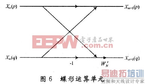 蝶算模块由一个复数加法器,一个复数减法器和一个旋转因子的复数乘法器构成,如图6所示。