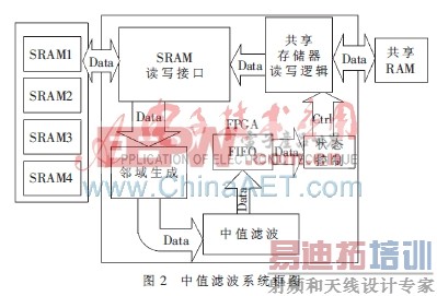 高清视频监控逐渐成为市场的热点,视频监控不仅要求把现场图像捕获并保存,而且还要尽可能清晰。在高清图像的生成和采集过程中,往往会受到各种噪声的干扰,使高清图像的质量变差,因此必须对图像进行滤波、平滑等预处理来消除噪声。中值滤波作为一种非线性滤波方法,既可以消除随机噪声和脉冲干扰,又可以很大程度地保留图像的边缘信息,得到了广泛的运用。在许多实际应用场合,如高清视频监控、X光图像的降噪等,需要快速且实时地进行中值滤波,软件实现达不到实时处理的要求,因此选用硬件实现。