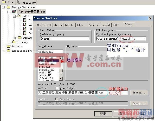 2,选择你输出网表的格式。这里我们选Pads2k.dll.