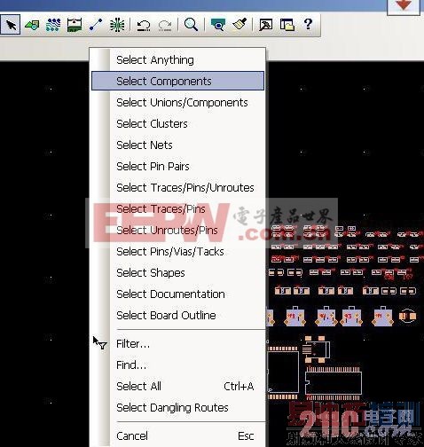 第三步:所有元件成功导入后,我们执行鼠标右键选择Select Components