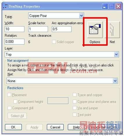 (2) 绘制 Copper pour 后呼叫Properties,并使用Options