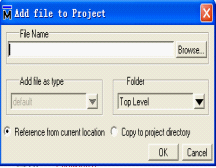 选择向工程添加的项目类型,然后单击“Close”按钮完成工程的建立。在此例中选择“Add Exiting File”项目。