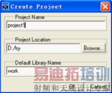 如图7.6所示,在ModelSim软件中选择“File”菜单的“New”选项,选择“Project”选项。打开如图7.7所示的新建工程对话框。