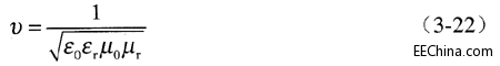 实际当中,几乎所有材料的相对磁导率都为l,所以可以把式(3-23)中磁导率υr这一项忽略。除了空气,其他材料的介电常数都是大于1,所以传输线中的光速总是小于2.99×10(8)m/s: