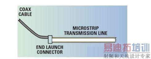 图1. 从同轴电缆和连接器到微带的信号注入。