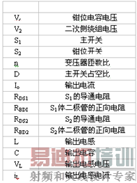 已有许多文献指出,此变换器稳态工作时模态1的损耗远大于其他开关模态的损耗,为简化分析,一般用P1代替一个开关周期的功率总损耗,则模态1的损耗P1重新表示为:
