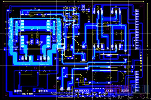 下面是功率主板的PCB截图,长宽为200X150MM,因为,这部分的电路比较简单,所以,我没有画原理图,是直接画了PCB图的。该板布板时,曾得到好友的提示帮助,特在此表示感谢。