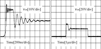 图7 加RCD吸收电路及RCD/RC双重吸收电路后 v ds的实验波形