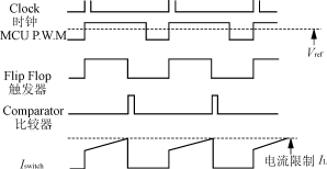 电流调节环路以比较器、触发器和功率开关晶体管为基础,来控制电流波形。输出电压调节环路给出的滤波后的PWM参考电压Vref,与电感侧电压相比较,确定通过斩波晶体管中的峰值电流IL。晶体管中