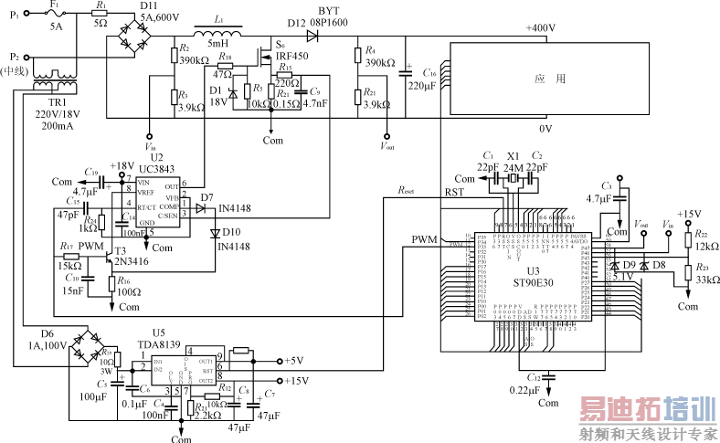 图10基于ST9和UC3843的数字PFC电路