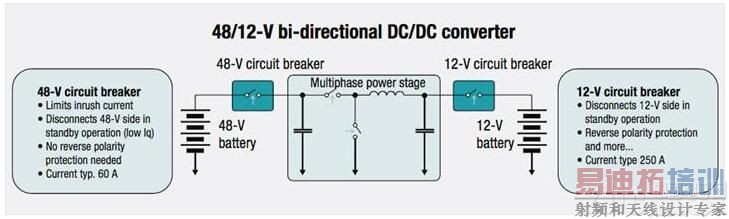 图3:一款48V至12V双向DC/DC转换器(图片由德州仪器提供)