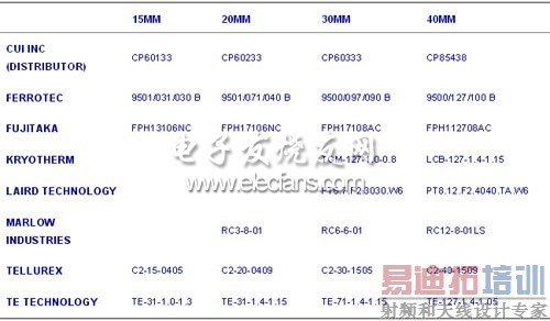 就给定应用而言,所需要的TEG尺寸取决于可用的最小ΔT、负载所需的最大平均功率、以及用于将TEG的一端保持于环境温度的散热器的热阻。LTC3108的最大功率输出位于15°W/K-cm2至30°W/K-cm2之间,具体数值取决于所选择的变压器匝数比和特定的TEG。表1罗列了一些推荐使用的TEG器件型号。