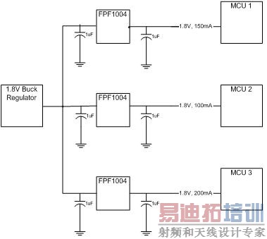 由于给负载供电的是降压调节器,因此不必在每个负载上进行电压调节,只需分别关断对每个负载的供电即可。虽然一个简单的开关就足够,不过处理器的电源要求相当严苛。若出现正或负的电压尖峰,处理器可能发生闩锁现象。为了避免这种情况,可在电压源上使用一个电容来消除电压尖峰。如果采用简单的开关来降低处理器的功耗,在处理器上电时便需要考虑到这个电容。在刚开始上电时,该电容的表现是短路,耗电量很大。这种瞬间短路现象会降低电源电压,造成一大问题,因为电源电压降低会造成线路上其它处理器的复位。解决办法是采用一个智能型负载开关 (如飞兆半导体的FPF1004) 来控制电流增加的压摆率。FPF1004器件能够管理负载的增加,确保电源线路电压保持在调节范围内。