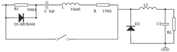 在开关控制电源的输入部分加入缓冲电路(见图3),其由线性阻抗稳定网络组成,用于消除电力线干扰、电快速瞬变、电涌、电压高低变化和电力线谐波等潜在的干扰。缓冲电路器件参数为D1为MUR460,R1=500Ω,C=6nF,L=36mH,R=150Ω。