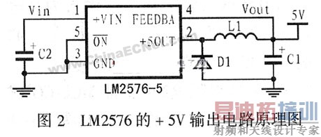 由LM2576构成的基本稳压电路仅需四个外围器件,其电路如图2所示。
