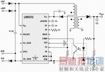 在PoE系统中加入辅助电源通常有三种配置方式:通过受电设备前端热插拔部分;直连到受电设备的电源控制器输入端;直连到受电设备的电源隔离输出电压。