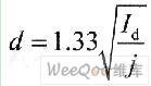式中:Id:流过变压器线圈电流有效值,j:为电流密度(2~3A/mm2)