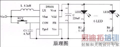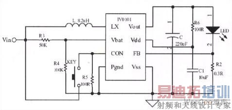 以IV0101典型应用为例。IV0101作为一款高效直流升压芯片,普遍用在4种设备上,即:单节镍氢充电电池或碱电池手持便携设备,LCD背光,手机背光及LED手电照明。现仅以LCD背光与1W的LED手电为例作说明。