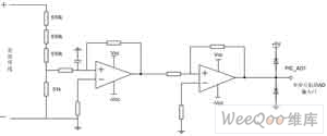 为了降低硬件成本,设计直流母线电压检测电路时采用了分压电阻的方法,而没有采用电压传感器。采用这种分压电阻的方法结构简单,易于调试。电路如图6所示。通过分压电阻得到的电压为直流母线电压的1/31,该电压通过两个反向比例放大电路输入到PIC单片机的AD1输入口中,再通过PIC单片机的AD转换处理为数字量。