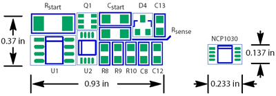 图3:基于NCP1030的偏置电源比其他解决方案节省超过90%的占位面积。
