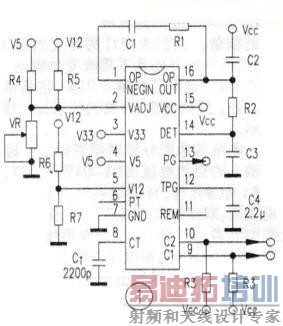 图1中电容C2的作用是保障电源的软启动。在电源启动瞬间,电容C2上端的电压迅速上升,导致⑨脚与⑩脚输出的负脉冲变窄,从而降低开机瞬间的浪涌电流,也避免了开机浪涌电压使过压保护电路动作。电容C3则稳定了(14)脚的电压,当电容C2下端的电压突变经R2传送过来时,.保证电源正常("POWERGOOD")信号的正确时序。