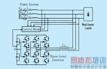 一直处于研究阶段的多级逆变器,最近被用于APF拓扑中,图11为配有三级逆变器的并联APF,今天在大多数的逆变器应用领域,三级逆变器已愈益普及,例如功率因数补偿器。多级变换器的优点是能降低APF产生的谐波含量。因与普通变频器比较,能输出更多(>2级)的电压,这一特点有利于减少滤波器本身产生的谐波。另一优点是能减少半导体电压或电流的定额,以及减少所需的开关频率。