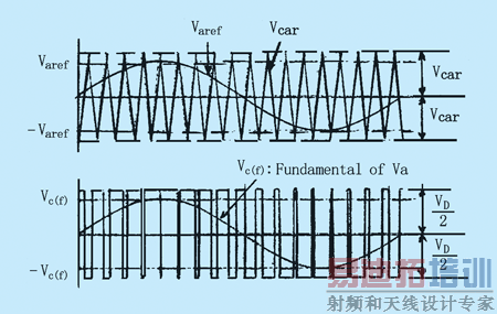为产生任意波形的交流电压,将PWM技术应用到直流母线电压斩波的电压源逆变器上。现有很多能组成正弦波或任意波形的PWM技术,利用PWM技术,不仅允许控制逆变器作为电压源,也可作为电流源以控制滤波器的交流输出。图2为所利用的最普通的三角载波(TC)技术,这是最简单的线性控制方法,是将有固定幅值的和固定三角波的输出电流误差进行比较。迫使开关周期内的输出电压Va限定于Vcar的载波周期内,并等于调制波Varef的平均幅值。正弦调制波的合成电压含正弦基波分量Va(f)和不希望的谐波分量,利用尽可能高的频率载波,可使这些不想要的谐波成分减到最小,但这取决于半导体功率器件(IGBT、 GTO或IGCT)的最大开关频率。