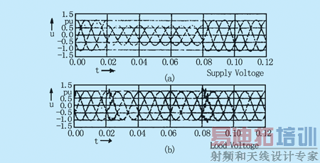 串联型APF是从1980年未引用于电网的,它主要作为电压调节器及电网与非线性负荷之间的谐波隔离器而工作的。图7为串联APF的接线图,通过匹配变压器将APF串联于电源和负荷之间,以消除电压谐波、平衡或调正负荷的端电压,可确保用户供电的电压质量,尤其适合于补偿交流电源及小功率应用中的电压不平衡与电压的下陷。因不需能量贮备(蓄电池),元器件的总定额较小,对UPS更为经济有效。串联APF注入与电源电压串联的电压分量,故可视为一可控的电压源,补偿负荷侧的电压下陷和上凸。但串联型APF损耗较大,且各种保护电路也较复杂,故很少单独使用。经常用它与无源LC滤波网络组成混合型APF。如图 7所示,无源LC滤波器与负荷并联,串联型APF的工作如同一台谐波隔离器,迫使负荷电流谐波主要通过无源滤波器循环,而不经过配电系统。此方案的优点是:串联APF的额定功率仅为负荷定额(KVA)的一小部分,通常为5%。但在电压补偿时,串联APF的视在功率定额可能增加。图8是串联滤波器为补偿负荷侧电压谐波的工作原理图。串联APF还可用于抗基波电压的干扰。图9所示为电源电压偶然跌落时串联APF所起的作用。如图8所示,负荷电压几乎保持恒定,仅在电源电压跌落的起始和最后瞬间,出现了很小的不稳定和振荡。