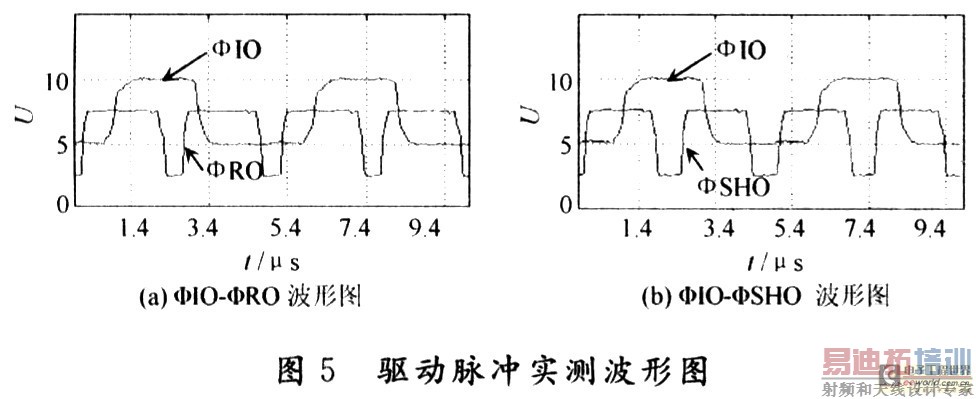 CCD器件需要三路以上的驱动时序脉冲。各驱动脉冲必须严格满足相位时序要求,才能保证CCD器件正常工作。该芯片正常工作需要四路脉冲,分别为电荷转移寄存器时钟φIO、复位时钟φRO、采样保持时钟φSHO以及传输门时钟φTGO。他们之间的时序关系如图2所示。