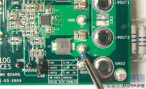 调节器的电感和输出电容是影响输出纹波的主要元件。较小的电感会产生更快的瞬变响应,但代价是电流纹波更大;而较大的电感会让电流纹波更小,相应的代价就是瞬变响应较慢。采用低有效串联电阻(ESR)的电容可最大程度减少输出纹波。带电介质X5R或X7R的陶瓷电容是一个不错的选择。通常使用大电容来降低输出纹波,但输出电容的尺寸和个数却是以牺牲成本和PCB面积得来的。