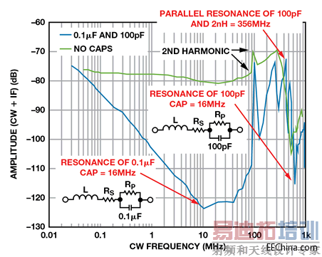 图5. IF ± CW去耦电容谐振的影响