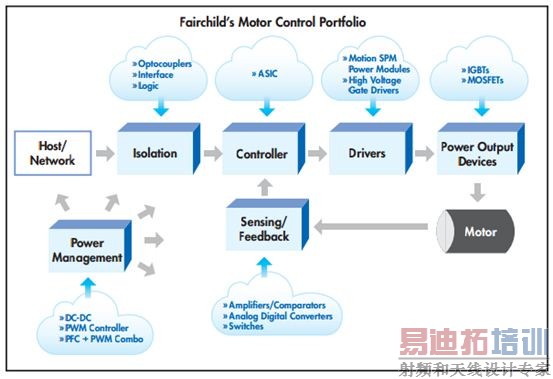 如上图所示,飞兆在马达控制方面几乎可提供全系列的解决方案,SPM高集成度解决方案主要用于ACIM、BLDC和PMSM马达驱动。自1997年首款SPM产品诞生以来,这一家族不断完善,目前该系列产品可覆盖低至20W到高达7.5kW的应用。