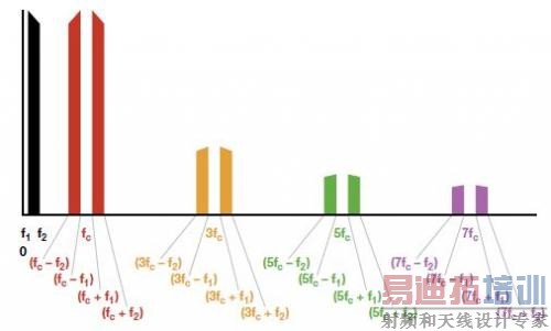 图6显示由于fc位于信号通带内,谐波项叠加(3fc - f1) < ( fc + f1),因此基波项不再能够通过LPF与谐波项分离。所需信号此时必须通过带通滤波器(BPF)进行选择。