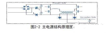 主电源采用移相全桥拓扑。全桥电路易于实现大功率的输出,而移相全桥作为全桥电路的改良版本,在整机效率方面更具备优势。桥式电路中串入谐振电感,谐振电感与MOS管的寄生输出电容Coss之间谐振。从而在MOS管开启之间使得DS端电压为零,实现零压开启。因为实现了MOS管的零压开启,降低了驱动电路以及MOS管Qg常数的要求,使得器件成本也随之降低。使用双象可控硅作为倍压开关。单向可控硅可断开整个主电源的供电。当可控硅完全断开时,整个主电源电路上所有器件均无电流环路,除去可控硅本身极小的漏电流,主电路无功耗损失。
