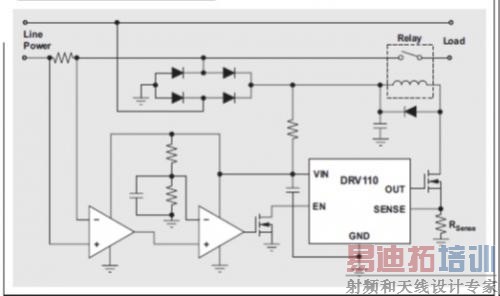 磁接触器需要一个电流通过线圈,以移动该接触器进入关闭或者开启位置。图9显示了使用DRV110的一个接触器系统的RMS电压检测电路实现。